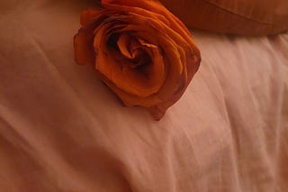 IMAGE DESCRIPTION: a red rose open on pink sheets (I took it from the Avant-Garde Bar post Guernica Editions launch on December 9, 2025).