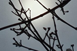 Image description: the winter sun through bare branches, except it wasn’t winter yet when I took this photo, it was December 13, 2025 and we were still…